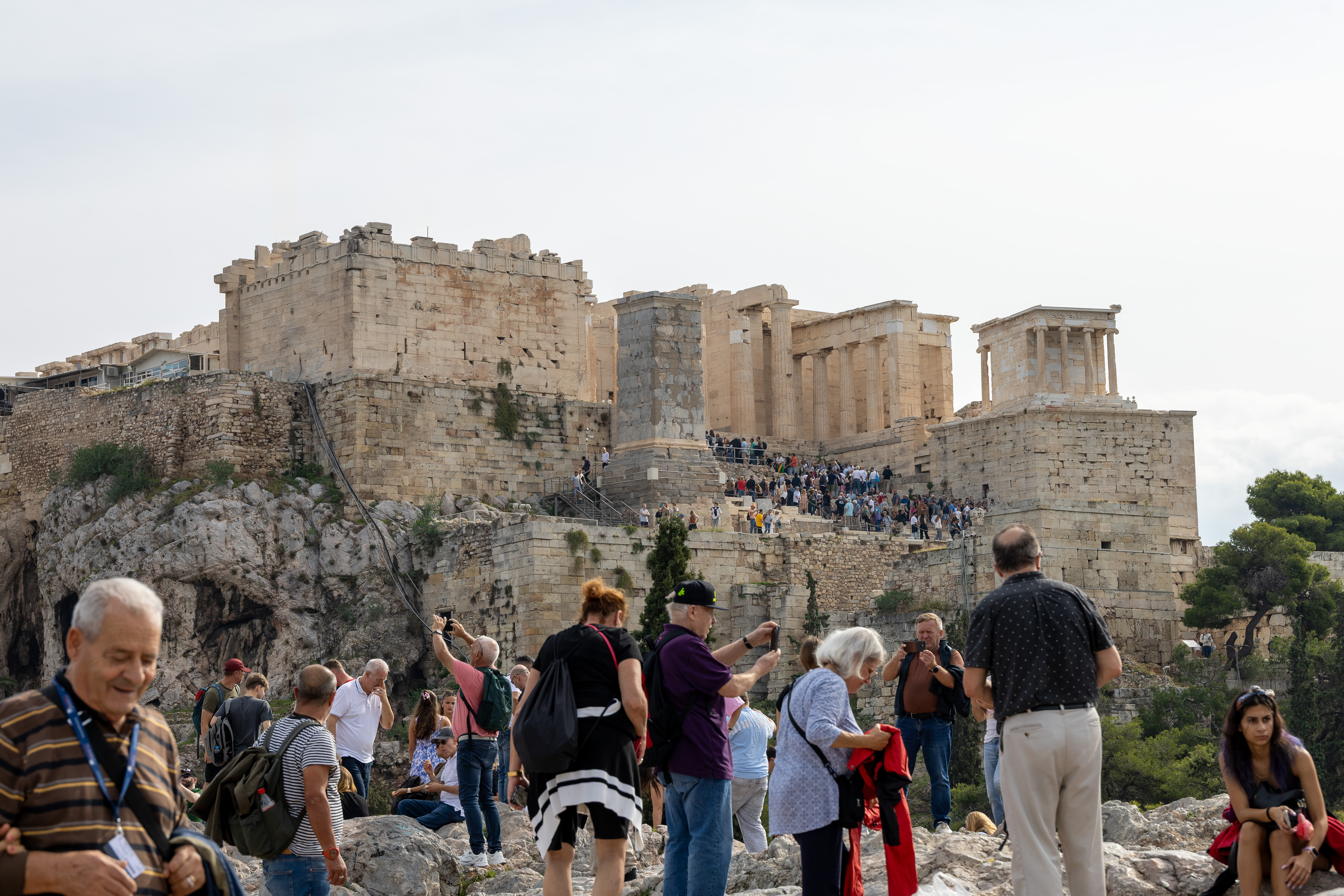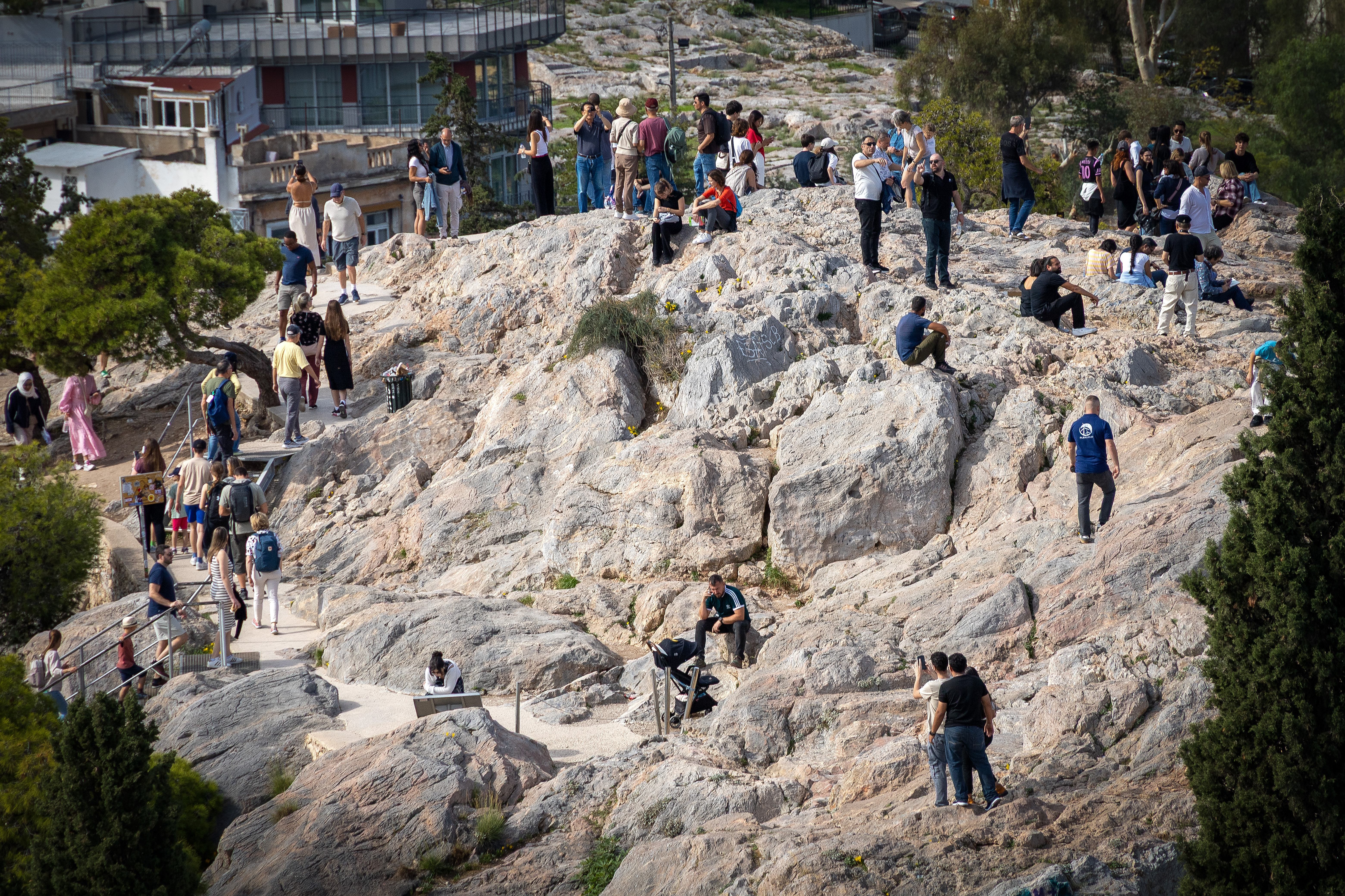 Вид с подъема к собственно Акрополю на Ареопаг. Обсели, как мухи на мед...