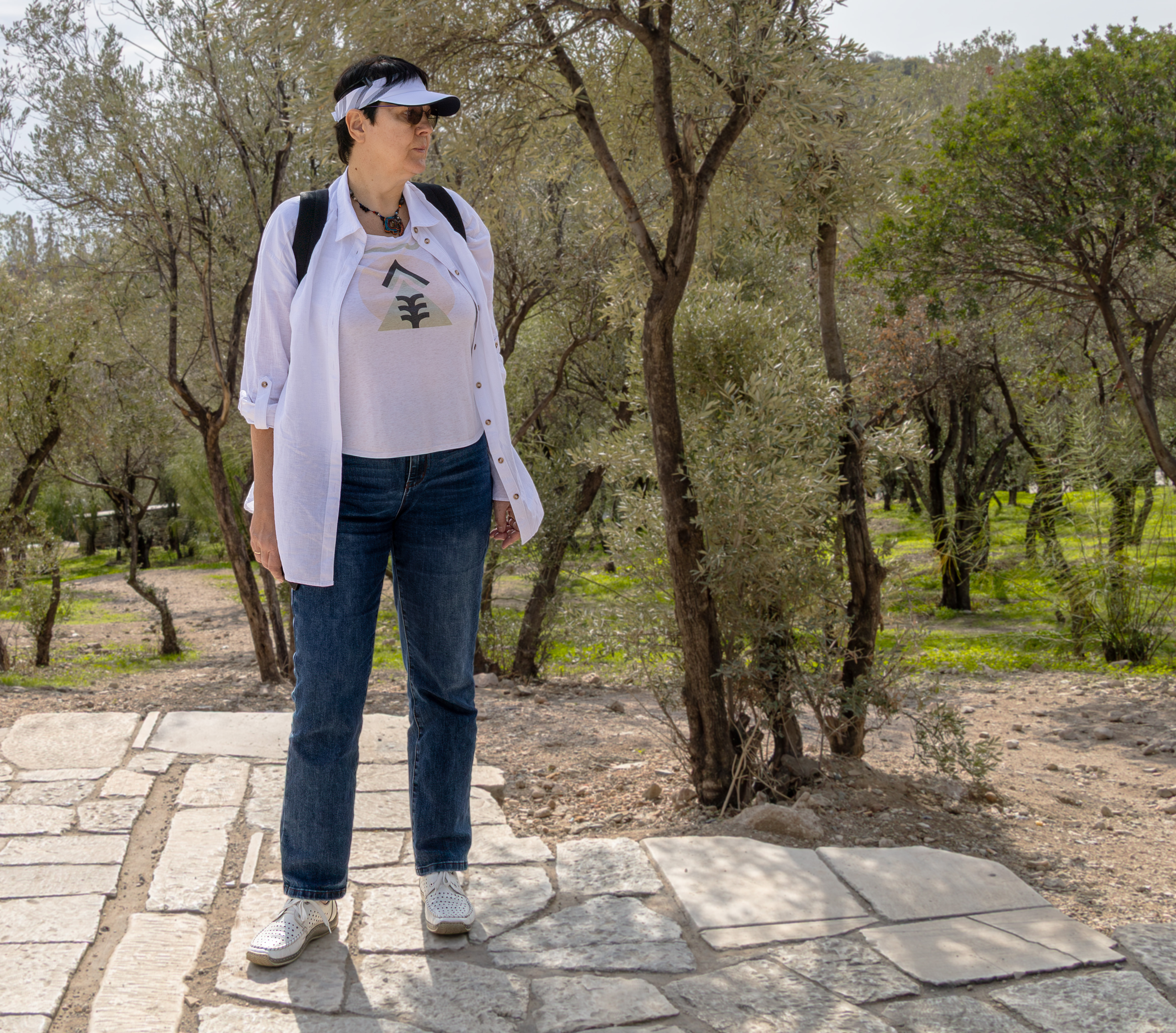 Совсем уже перед входом в Акрополь. Света на фоне древнего оливкового леса на склонах акропольского холма.